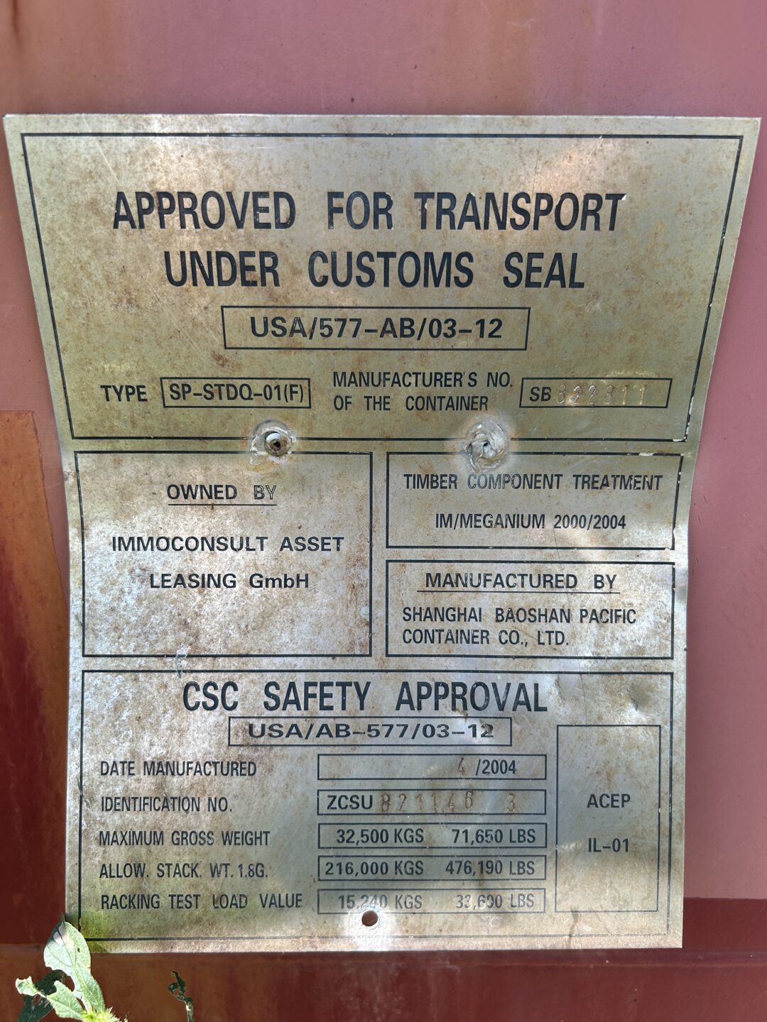 Date of MFG: 4/2004